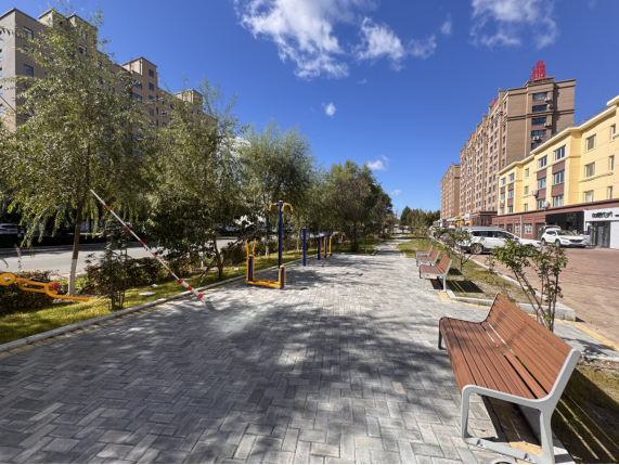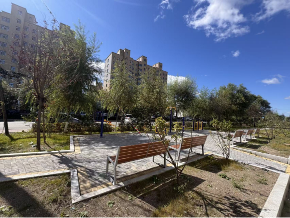 园内植物配置“四季有景、层次丰富”。120株景观树构成植物群落的核心骨架,其中4株紫叶造型景观树以独特的造型与浓郁的紫叶色泽,成为园区的视觉焦点;30株丛生花楸兼具观赏性与生态价值;2株红叶榆叶梅球为植物景观增添秩序感与色彩亮点;7株红宝石海棠、6株山楂树、2株紫叶李、5株紫叶稠李丰富景观层次,四季景致各有特色;16株忍冬藤蔓、49株李树完善植物群落的生态结构;全域铺设的770平方米优质草坪提升了园区的通透感与自然气息,也为市民提供了可亲近的绿意空间。