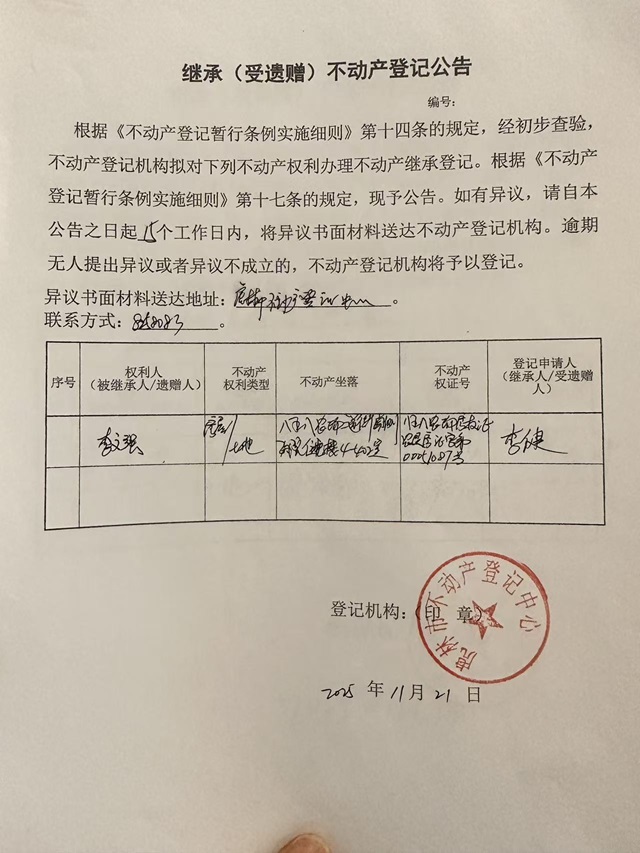 继承不动产登记公告-李健
