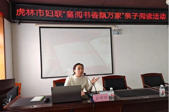 本次活动,市妇联邀请到家庭教育指导师、虎林市第四小学金明珠老师围绕“如何让孩子爱上阅读”开展专题讲座。“最好的家庭家庭教育方式就是亲子陪伴、最好的亲子陪伴是心灵陪伴”,金明珠老师通过角色扮演、交流互动、案例分析的形式引导孩子与家长树立“阅读”新观念,从专业的角度对家长如何用更好的方式去引导孩子阅读、如何营造氛围激发兴趣、做智慧型的父母进行了全面指导。两位家长代表分享了教育经验,也赢得了阵阵掌声。家长们纷纷表示本次讲座既有趣、又实用,干货满满,今后将在家庭教育上积极反思,更加重视亲子阅读,提升孩子的阅读能力,更注重培养孩子良好的阅读习惯,陪伴孩子健康成长。