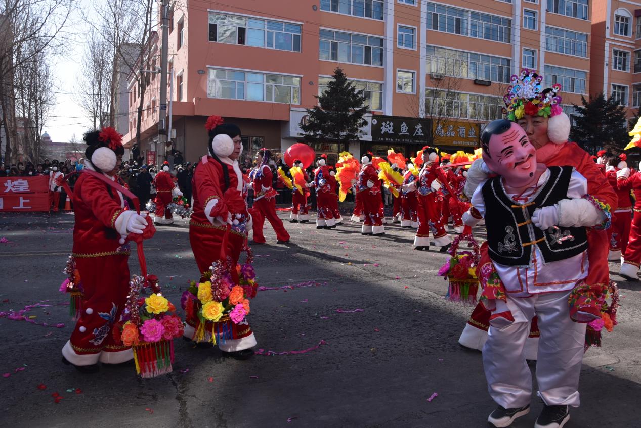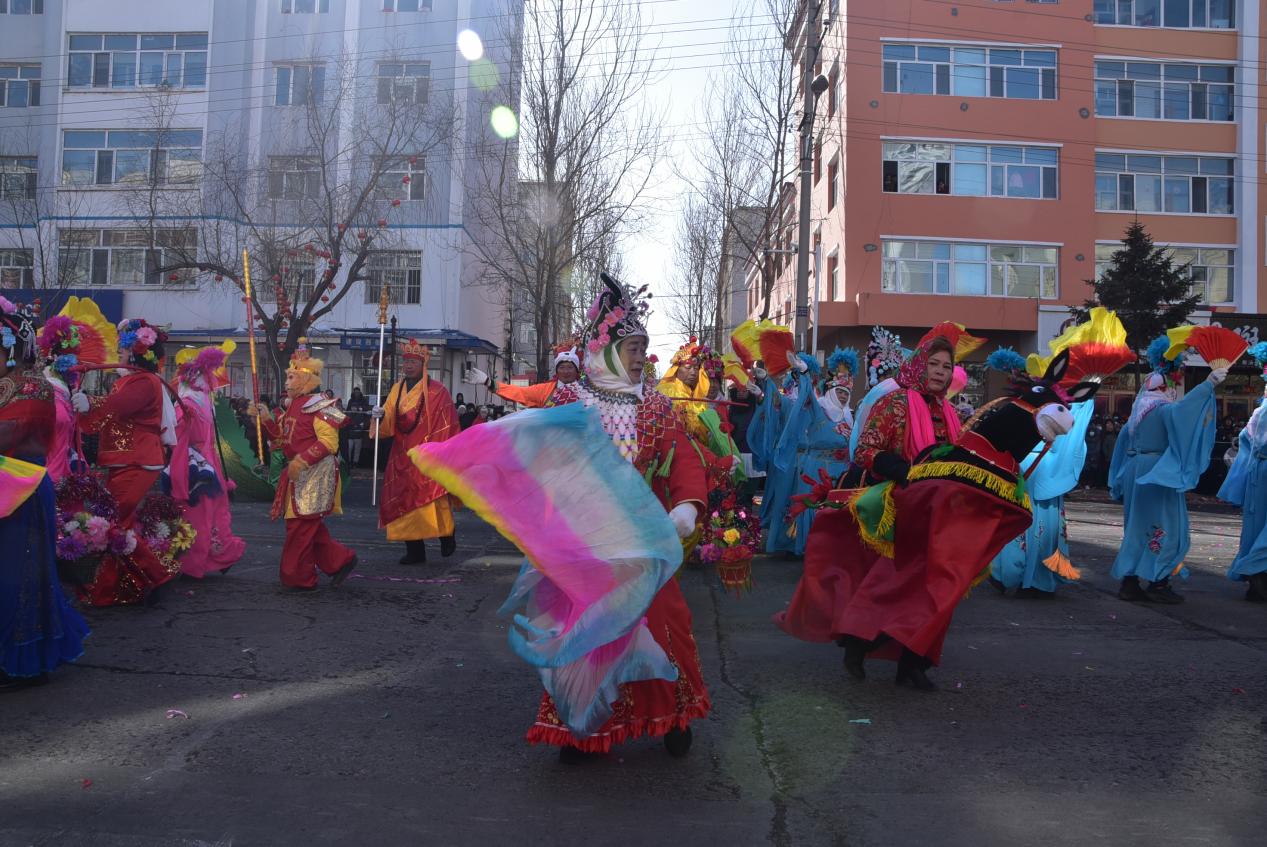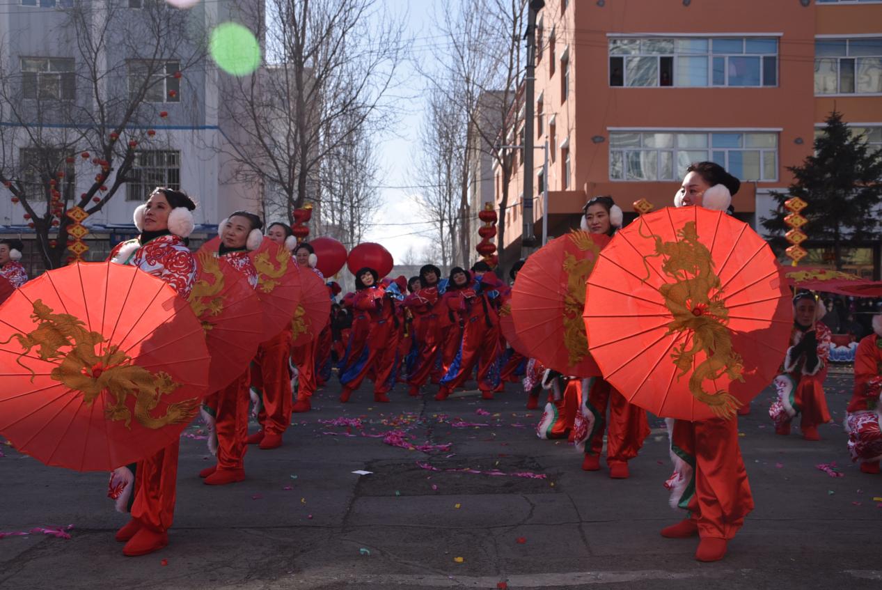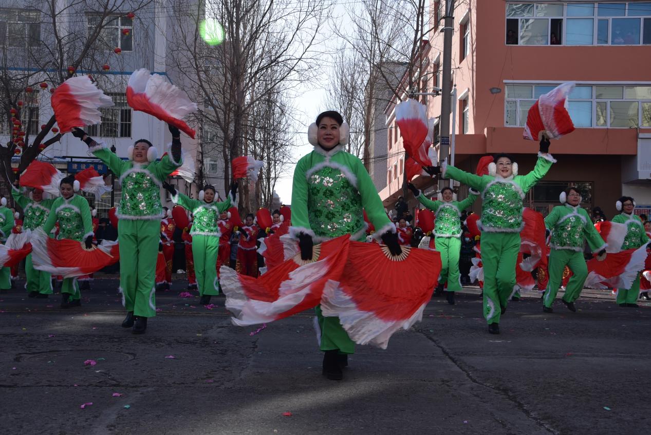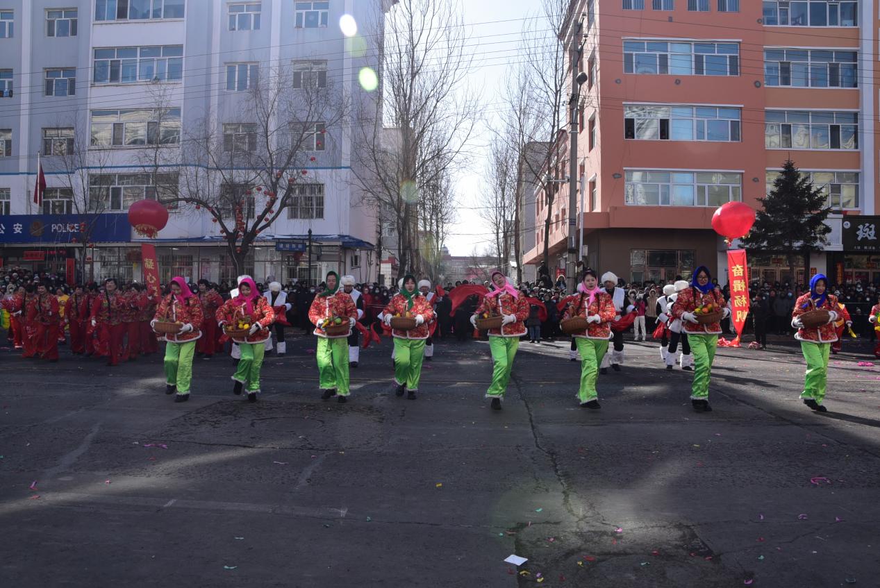(中心街道秧歌队、东方红镇和迎春镇联队、机关工委秧歌队)