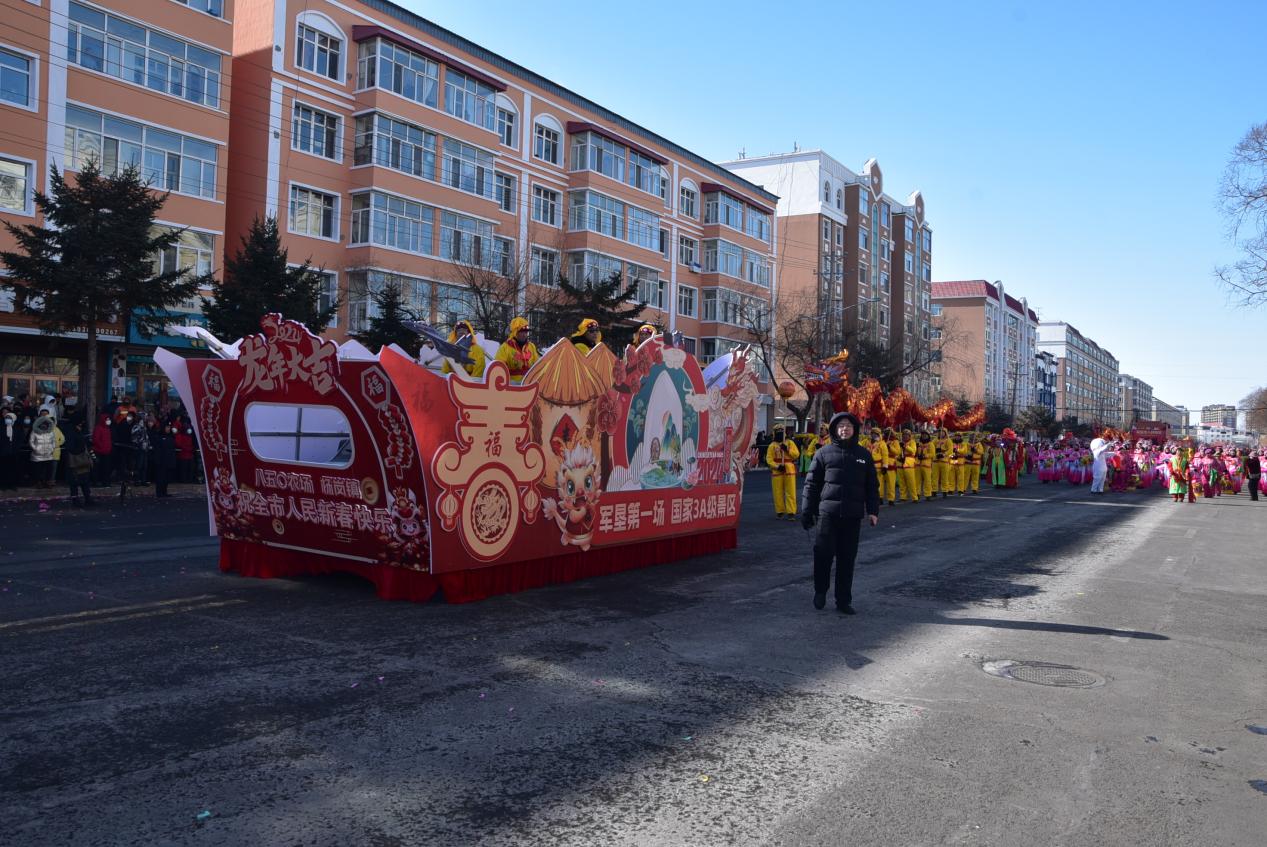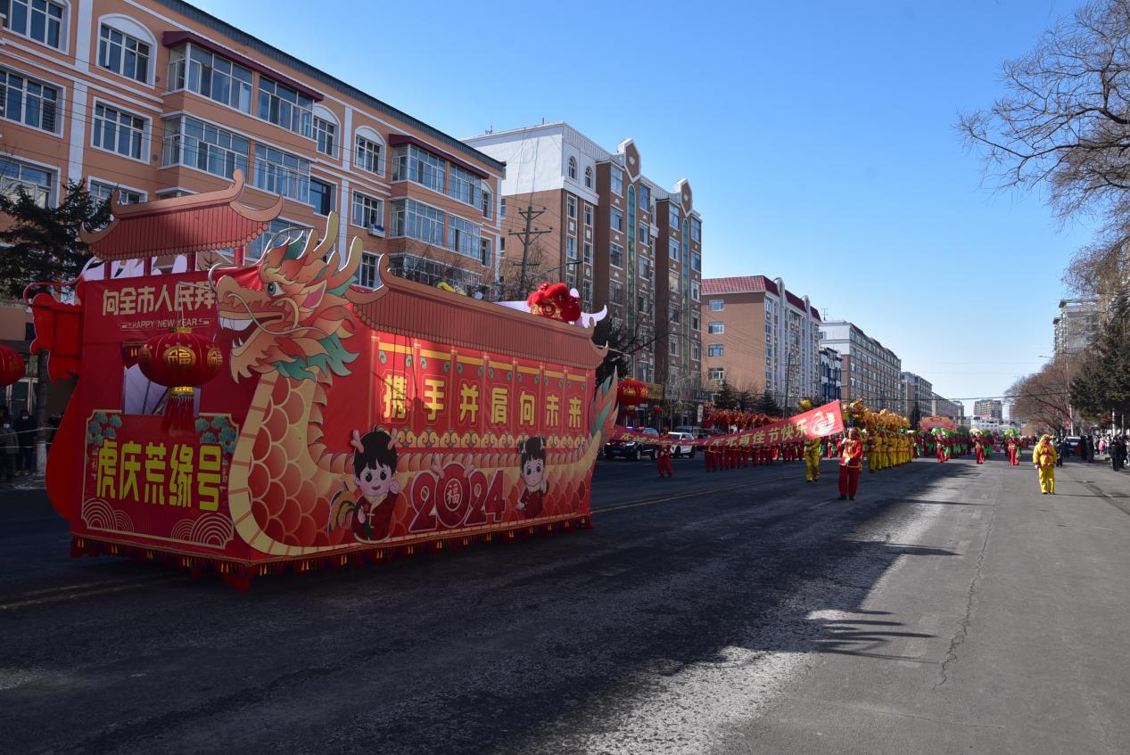 2月24日上午,由中共虎林市委员会、虎林市人民政府主办,市文体广电和旅游局承办的虎林市2024年元宵节秧歌展演活动在建设西街三派路口拉开帷幕。四大班子,农垦森工企业领导,及域内优秀企业代表与广大市民一道共看秧歌展演、同庆元宵佳节。来自全市14支参赛队伍(以抽签为序)同台竞技表演,各展风采。这场传统文化大餐,让在场群众在元宵节尽情感受浓郁的节日氛围和祥和的喜庆气息。
