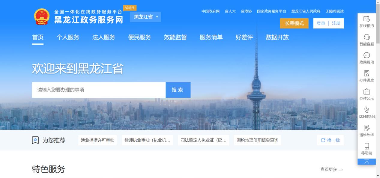 1.打开电脑浏览器,搜索并进入黑龙江省政务服务网官方平台;