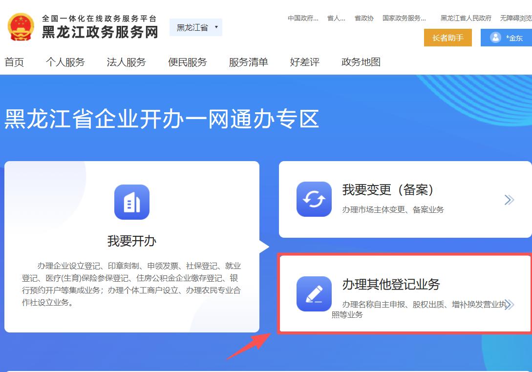3.点击页面内“办理其他登记业务”选项,随后选择“AI惠企名”功能入口;
