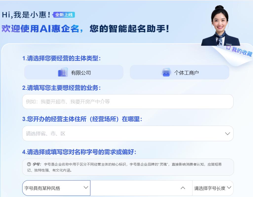 AI“惠企名”生成的名称建议仅为辅助参考,不代表最终审核结果,相关企业名称能否顺利核准通过,需以市场监管部门正式审核结论为准。