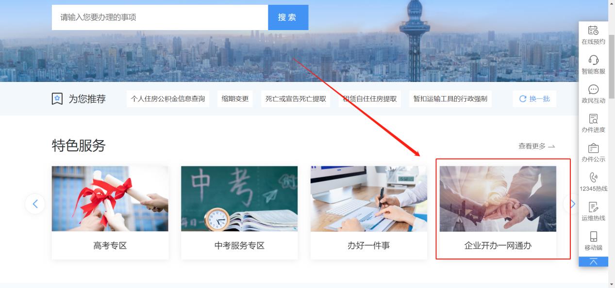 2.在平台首页找到并进入“企业开办一网通办”专属专区;