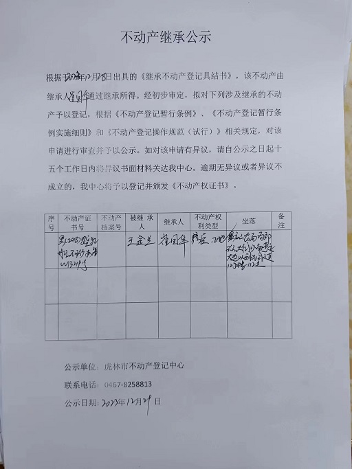 不动产继承公示-崔国华