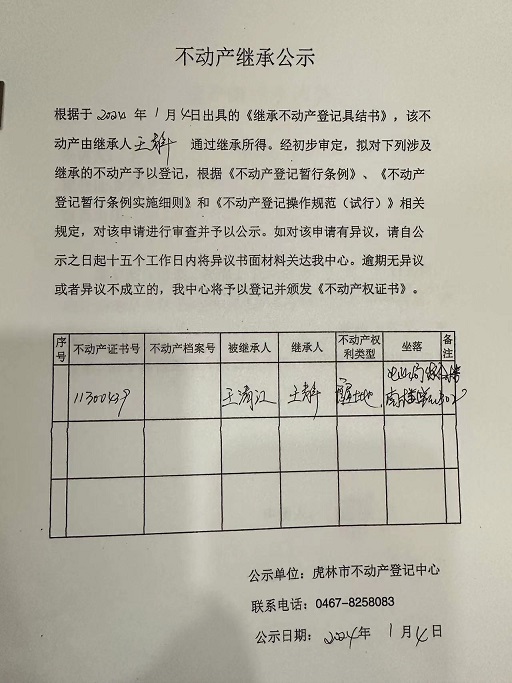 不动产继承公示-王静