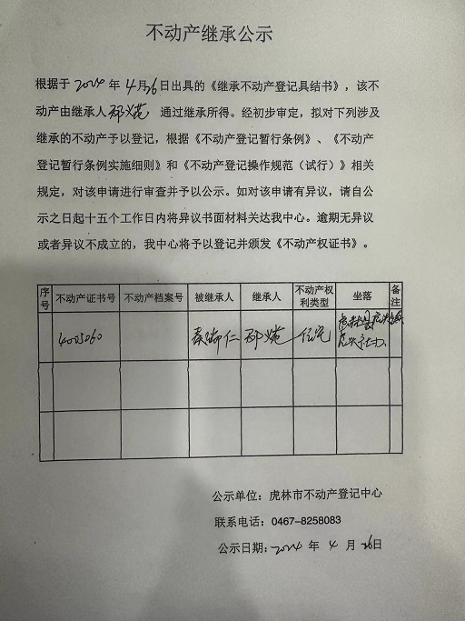 不动产继承公示-邴义花