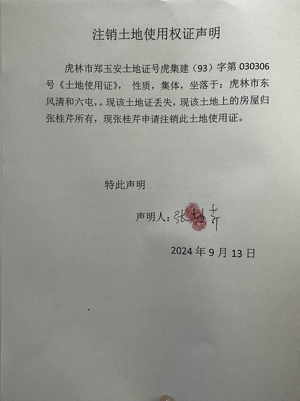 注销土地使用证声明-张桂芹