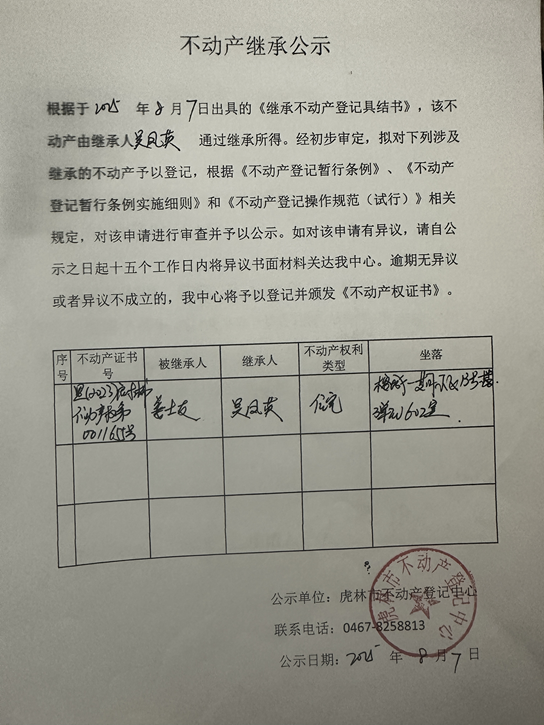 不动产继承公示-吴凤英