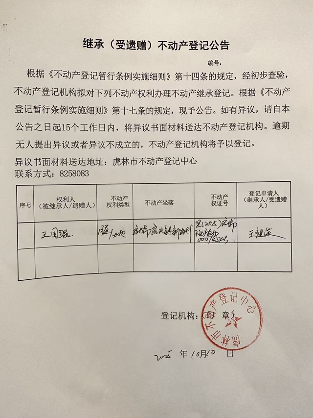 继承不动产登记公告-王祖荣