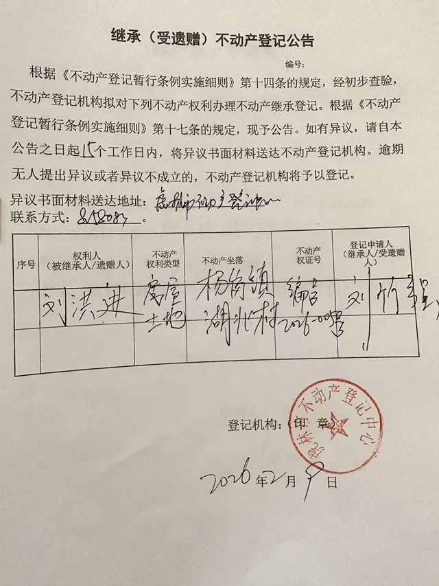 不动产继承公示-刘竹强
