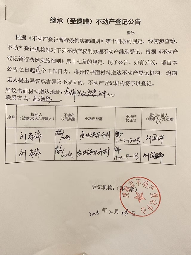 不动产继承公示-刘国瑞