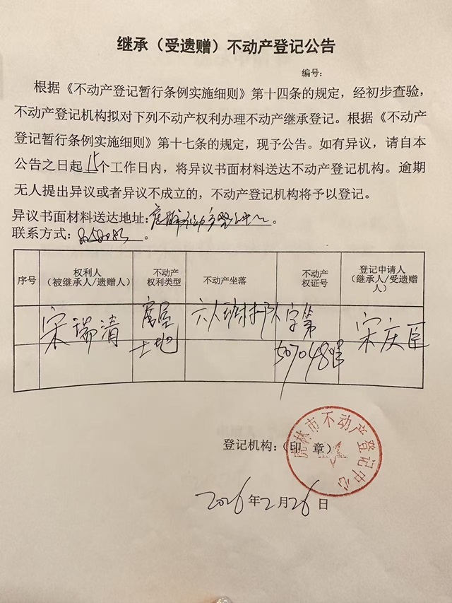 不动产继承公示-宋庆臣
