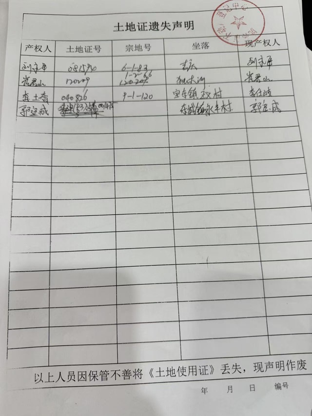 土地使用证遗失声明-77