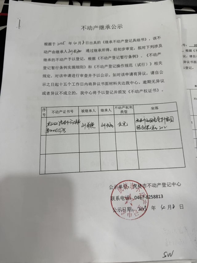 不动产继承公示-刘长和
