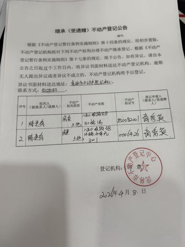 继承不动产登记公告-商秀英