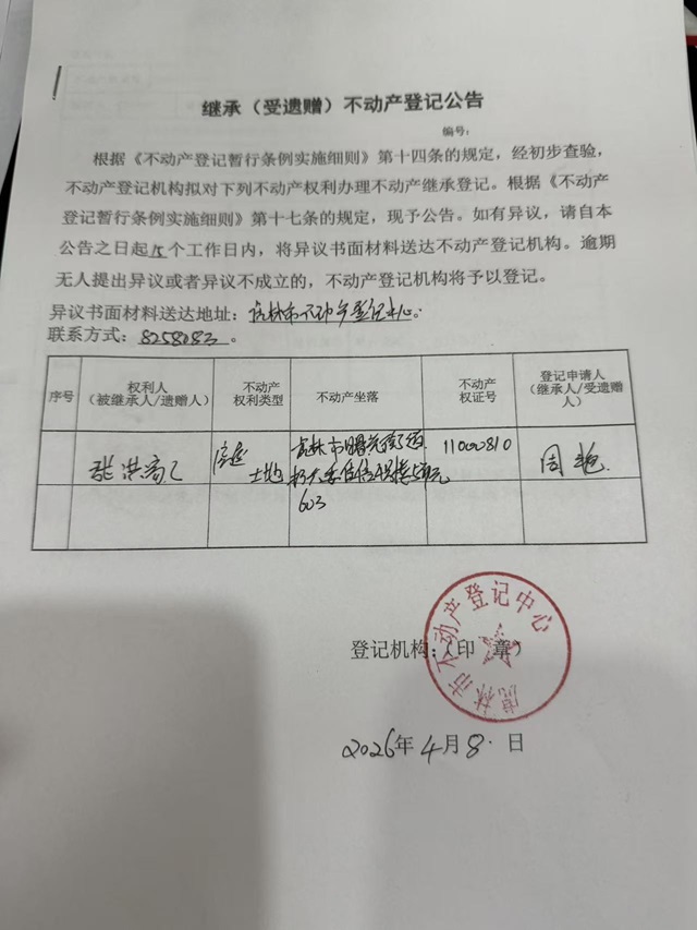 继承不动产登记公告-周艳