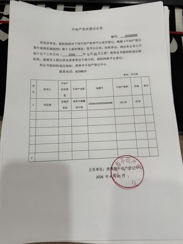 不动产首次登记公告-刘征清