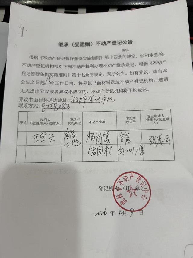 继承不动产登记公告-张茂云