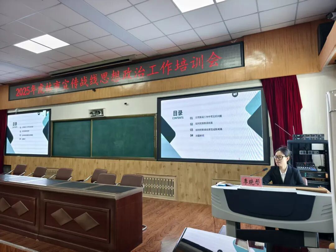 本次会议还进行了专题业务培训,市委宣传部各科室围绕《如何在日常工作中挖掘新闻线索》《解读虎林市创建全国文明城市测评体系(2025年)》等方面内容为参训学员进行授课。