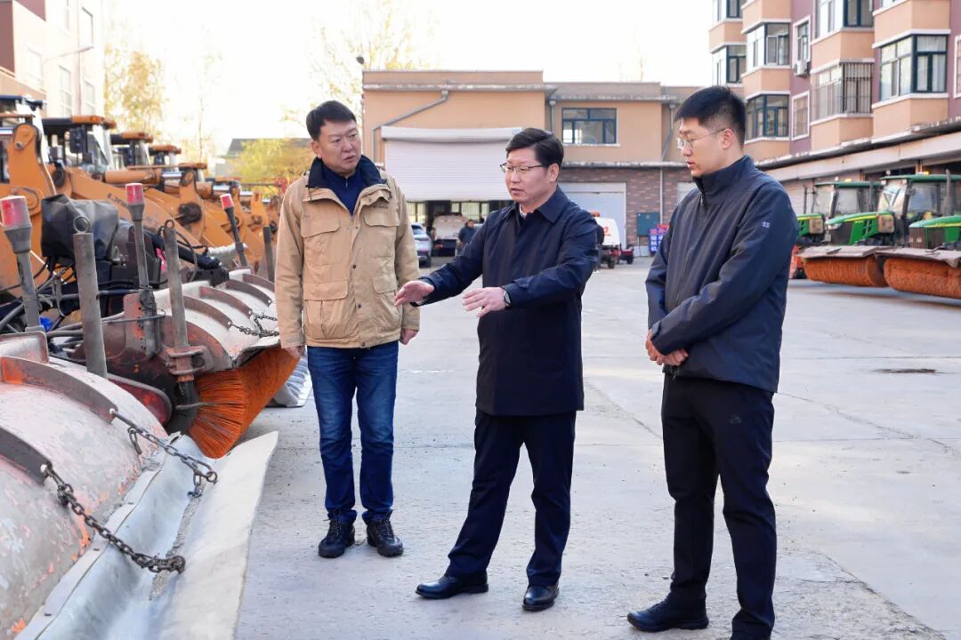 在环卫中心设备库内,曹国锋重点检查了清雪设备和环卫作业车辆维护保养情况,了解冬季环卫工作准备进展。他强调,要提高冬季清雪重视程度,以雪为令、闻令而动,加强大型清雪机械和人力清洁作业联动配合,全力做好冬季清雪工作,切实做到随下随清、雪停路净。