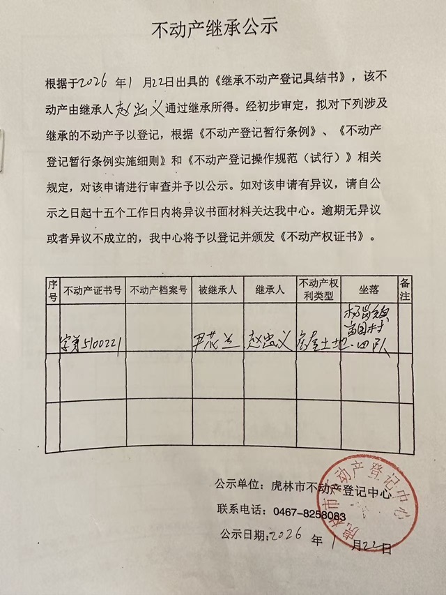 不动产继承公示-赵忠义