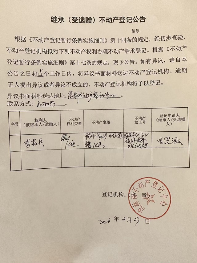 不动产继承公示-李思涵