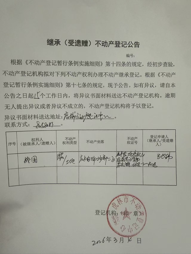 继承不动产登记公告-张伟