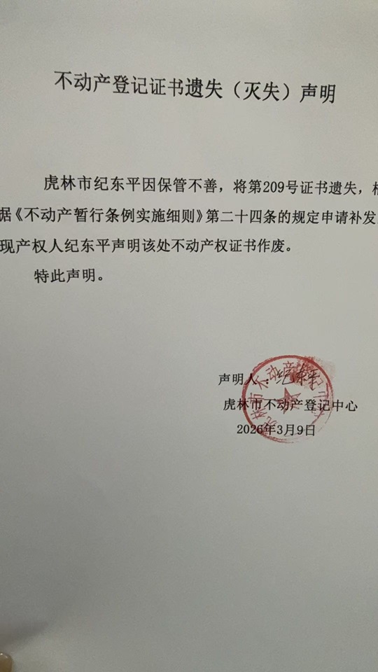 不动产登记证书声明-纪东平