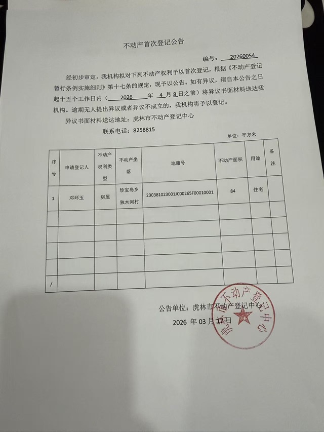 不动产首次登记公告-邓环玉