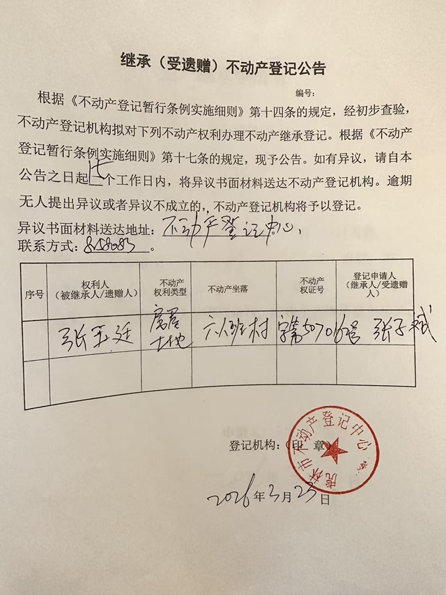 不动产继承公示-张子斌