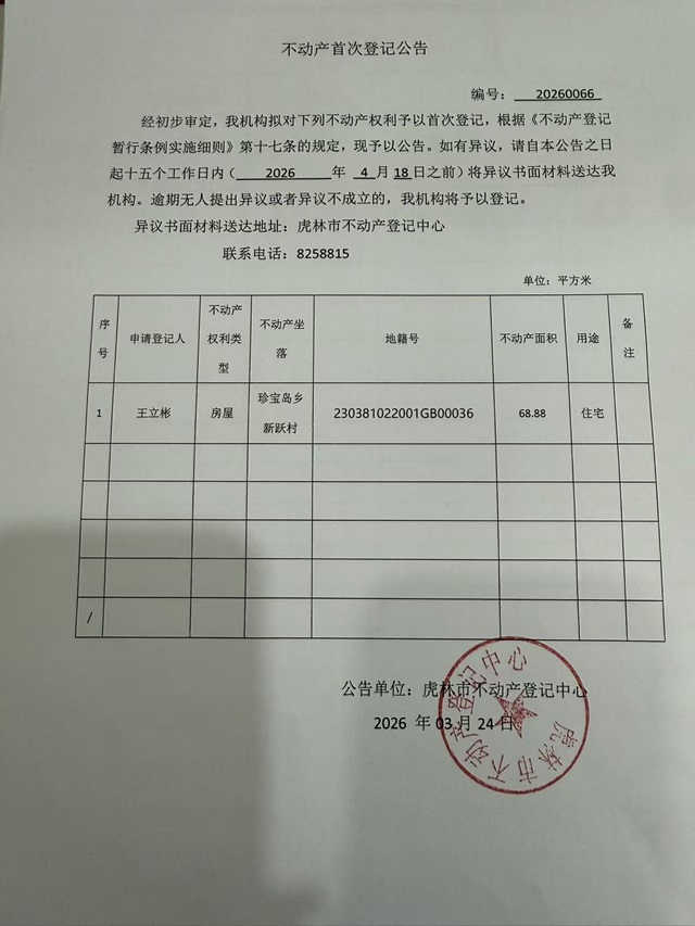 不动产首次登记公告-王立彬