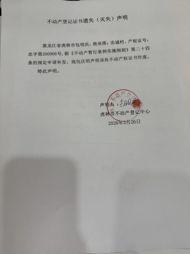 不动产登记证书遗失声明-包明庆