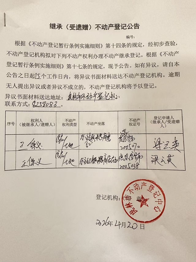 不动产继承公示-梁云英