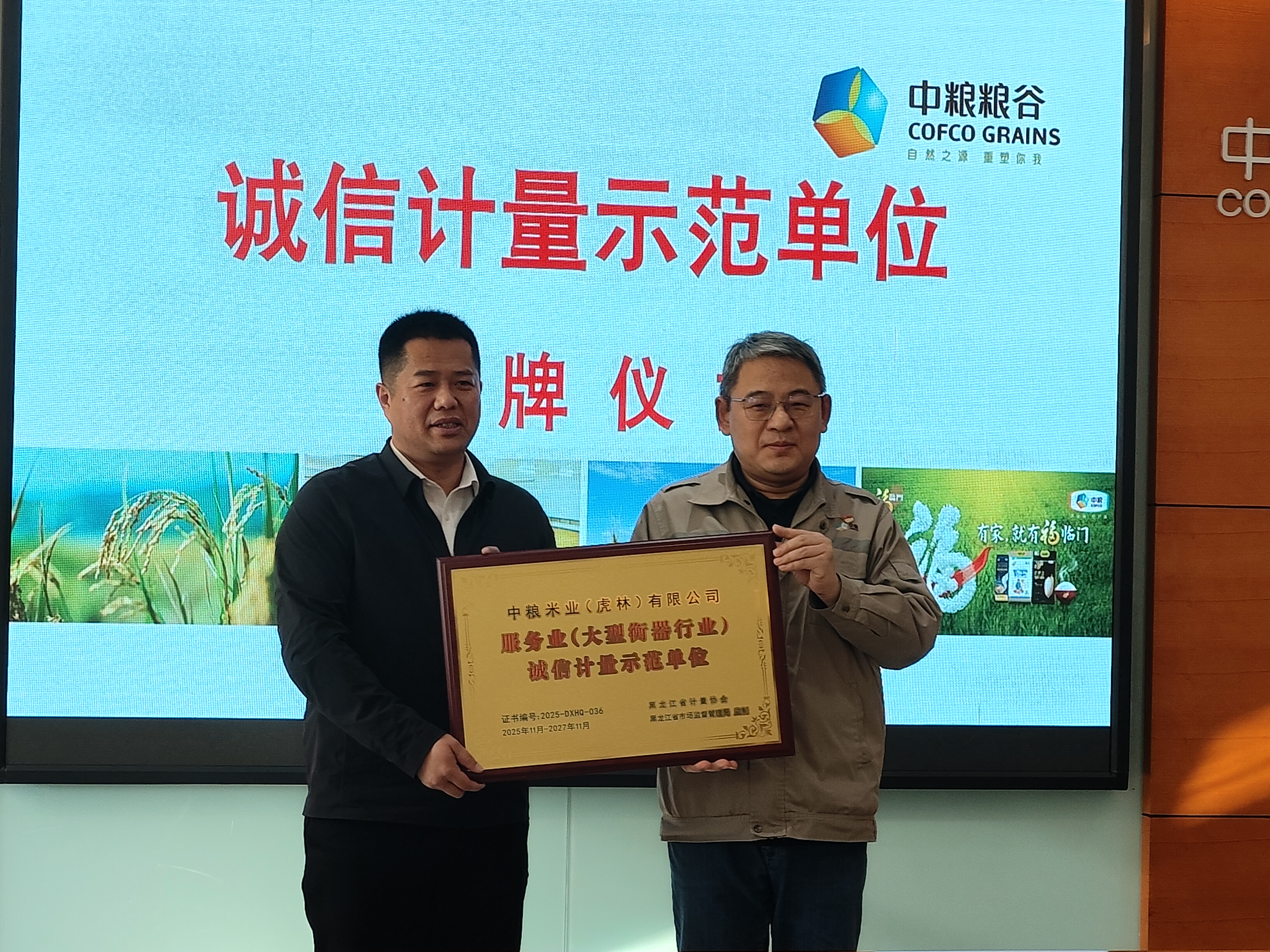黑龙江省2025年度服务业诚信计量示范单位名单近日正式公布。经企业自主申报、属地市场监管部门初审推荐、市级实地核查、省级综合评审及社会公示等程序严格评选,虎林市共有11家企业荣获省级“诚信计量示范单位”称号,具体包括:中粮米业(虎林)有限公司、北大荒垦丰种业股份有限公司八五〇分公司、虎林市杨岗金穗米业有限公司、北大荒粮食收储集团黑龙江八五六粮食贸易有限公司、黑龙江省牡丹江农垦云山米业有限公司、黑龙江省北大荒米业集团卫星制米有限公司、虎林市森林米业集团有限公司、绿都集团股份有限公司东方红分公司、绿都集团股份有限公司虎林第二分公司、虎林市阿悦眼镜店、虎林市精益眼镜店。