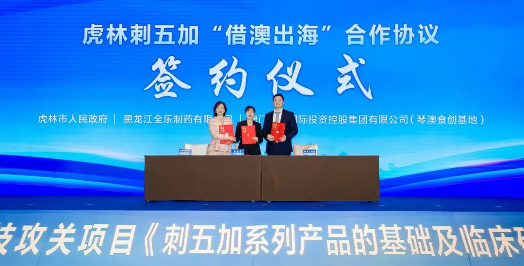 学术交流环节成果丰硕。天津中医药大学科研处副处长郑文科发布复方刺五加颗粒综合评价阶段性成果报告,系统阐述产品在科研创新与临床应用中的核心价值。随后,国家科技重大专项《复方刺五加颗粒用于调神治癌临床评价》正式启动,首都医科大学附属北京中医医院、复旦大学附属肿瘤医院、上海中医药大学附属市中医院等8家顶尖医疗机构与黑龙江全乐制药携手,为中医药治疗肿瘤并发症开辟全新路径,也为虎林刺五加产品的临床应用拓展提供了有力支撑。现场还举行了虎林刺五加“借澳出海”合作协议签约仪式,虎林市人民政府、黑龙江全乐制药有限公司与澳门和飞国际投资控股集团有限公司达成合作,为刺五加产品开拓国际市场奠定坚实基础。