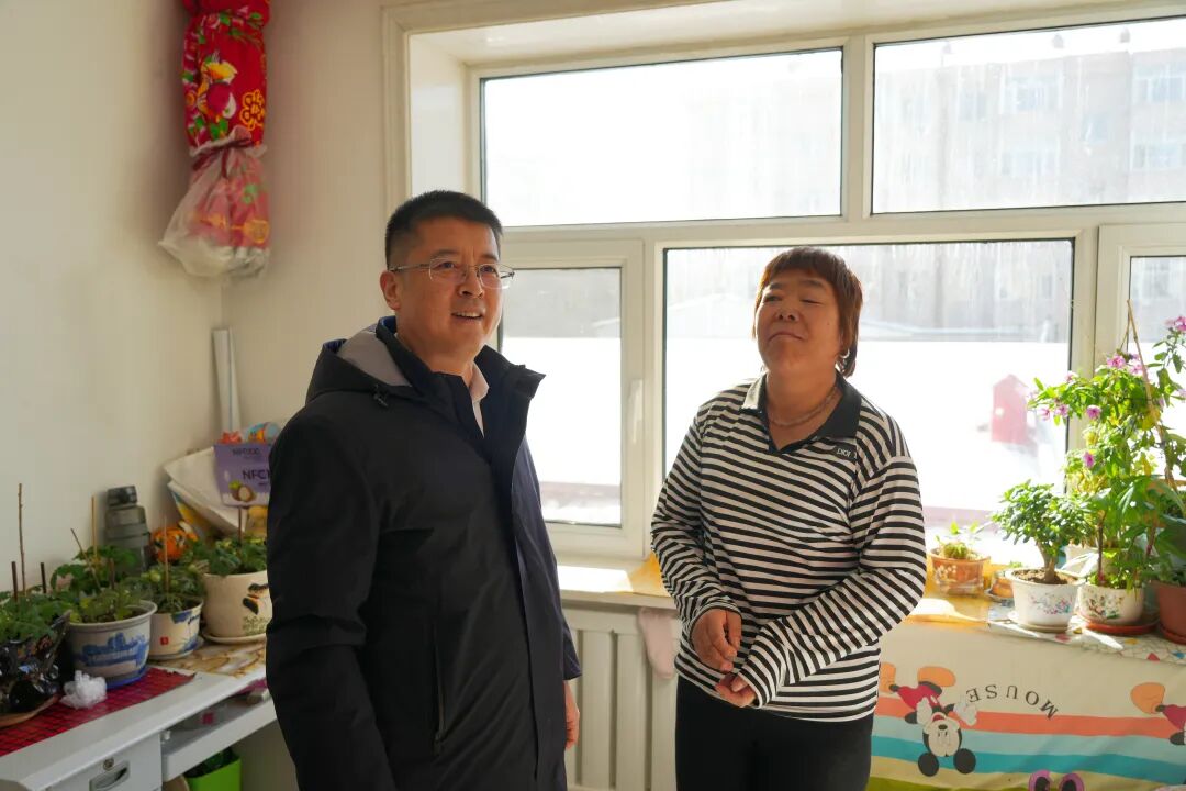 在困难群众侯家贤家中,温永豹与她亲切交谈,仔细了解群众生产生活中遇到的实际问题,认真查看家庭居住条件、生活设施配备以及冬季取暖、用电安全等情况,并送上新春祝福。他强调,各相关部门要把保障和改善民生放在突出位置,常态化开展入户走访工作,严格落实各项民生保障政策,补齐民生工作短板,切实履行好民生保障工作职责。要始终把困难群众的生产生活作为重点工作来抓,强化部门协同配合,持续强化责任担当,细化工作措施,全力保障困难群众基本生活。